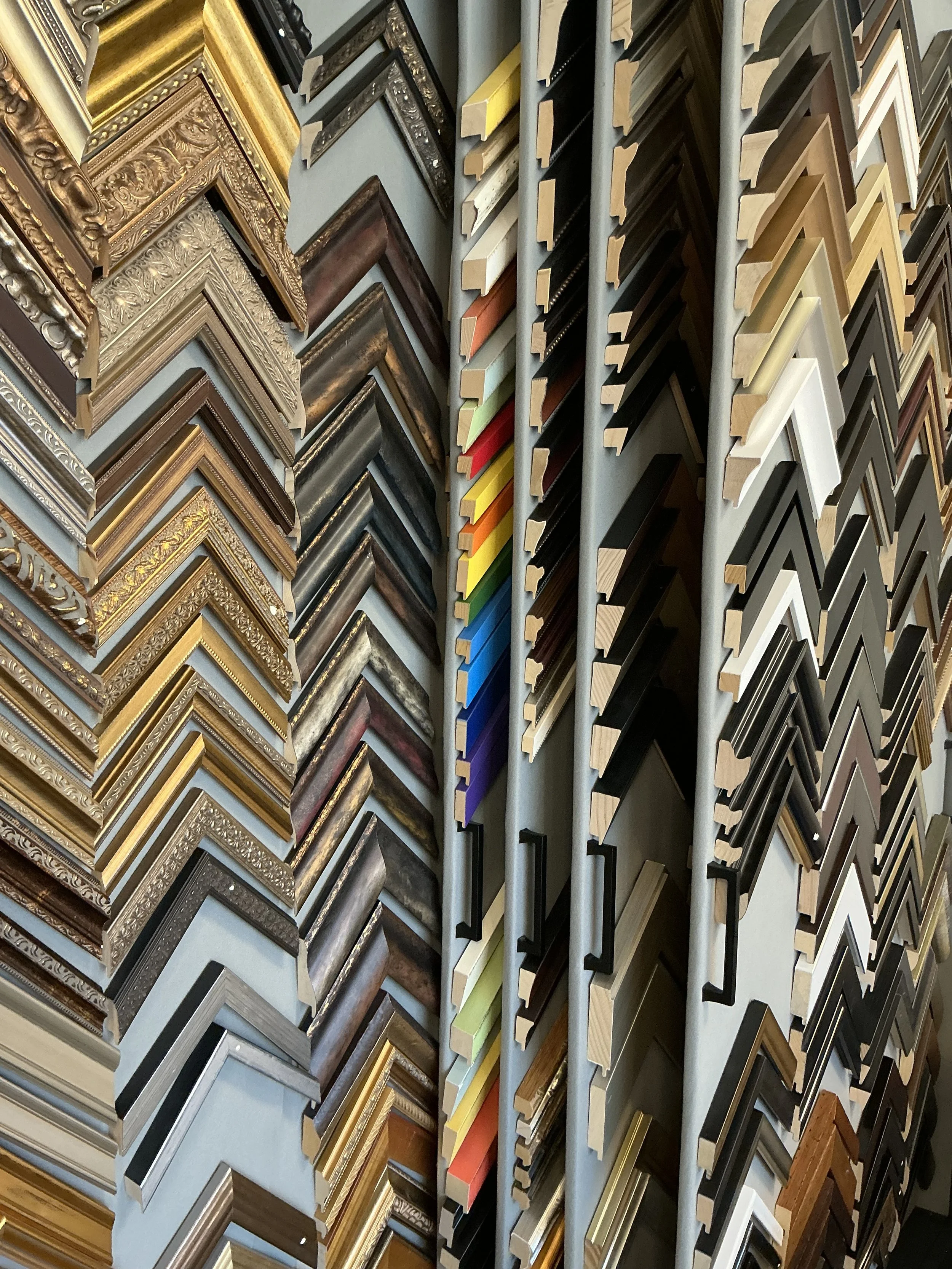 There’s no reason to settle for a frame that looks “good enough” that you found online or in a store. We’ll help you choose from hundreds of mouldings and mats to make the perfect match for your artwork. Everything will have the correct colors, proportions, and materials to make your piece look that much better.